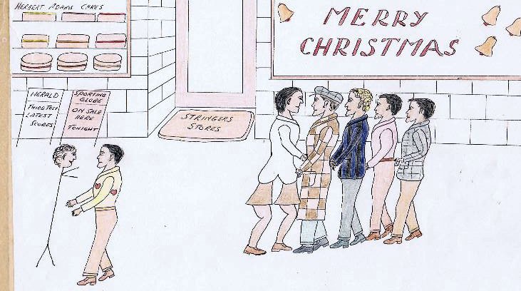 ![]() The boys take in some Christmas shopping. They are outside Stringers Stores. |