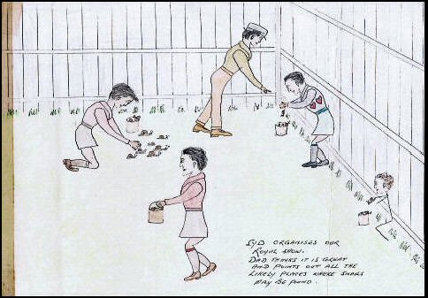 ![]() Syd organizes our Royal Show. Dad thinks it is great and points out all the likely places where snails may be found. |