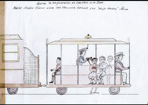 ![]() Going to the football at Carlton with Dad. These cable trams were the training ground for "Hop Harry" Stone. When they had grown older, the young men and their father walked all the way from Brunswick to Princes Park. |