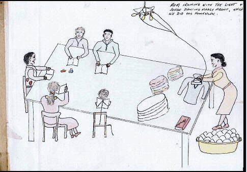 ![]() Mum ironing with the light shade dancing madly about, while we did our homework. |