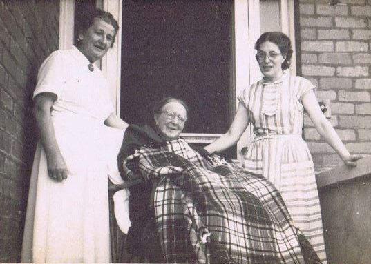 | Auntie Grace and Uncle Ern as I remember them. | Grace SMITH (right) as a teenager. Grace became Grace REED through her marriage to Ern. Her mother Daphne was Henry Melmoth's sister. | Grace during the WWII years. |