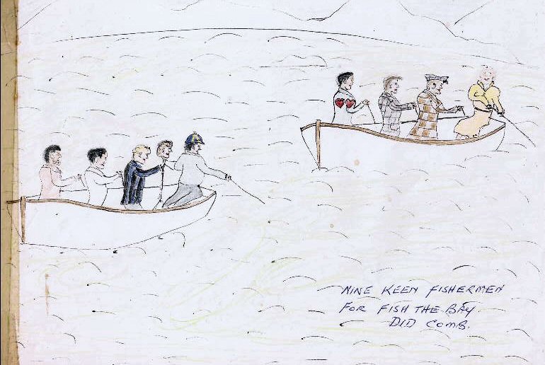 ![]() Nine keen fishermen for fish the bay did comb. |